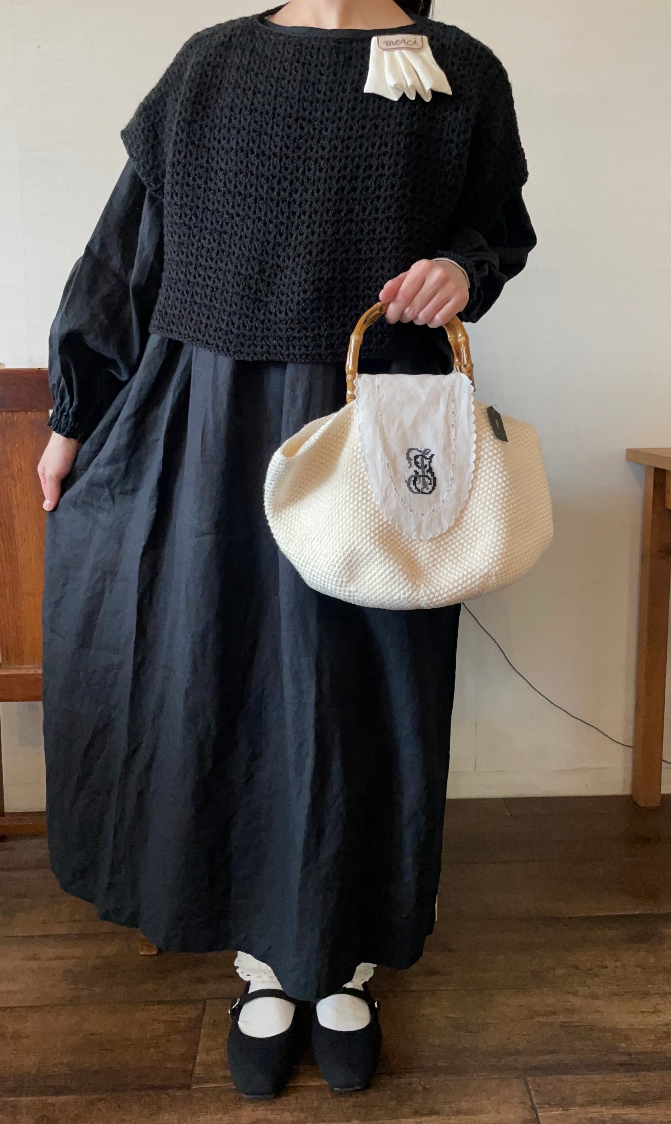 リネンの生地でタックをとり存在感たっぷりの