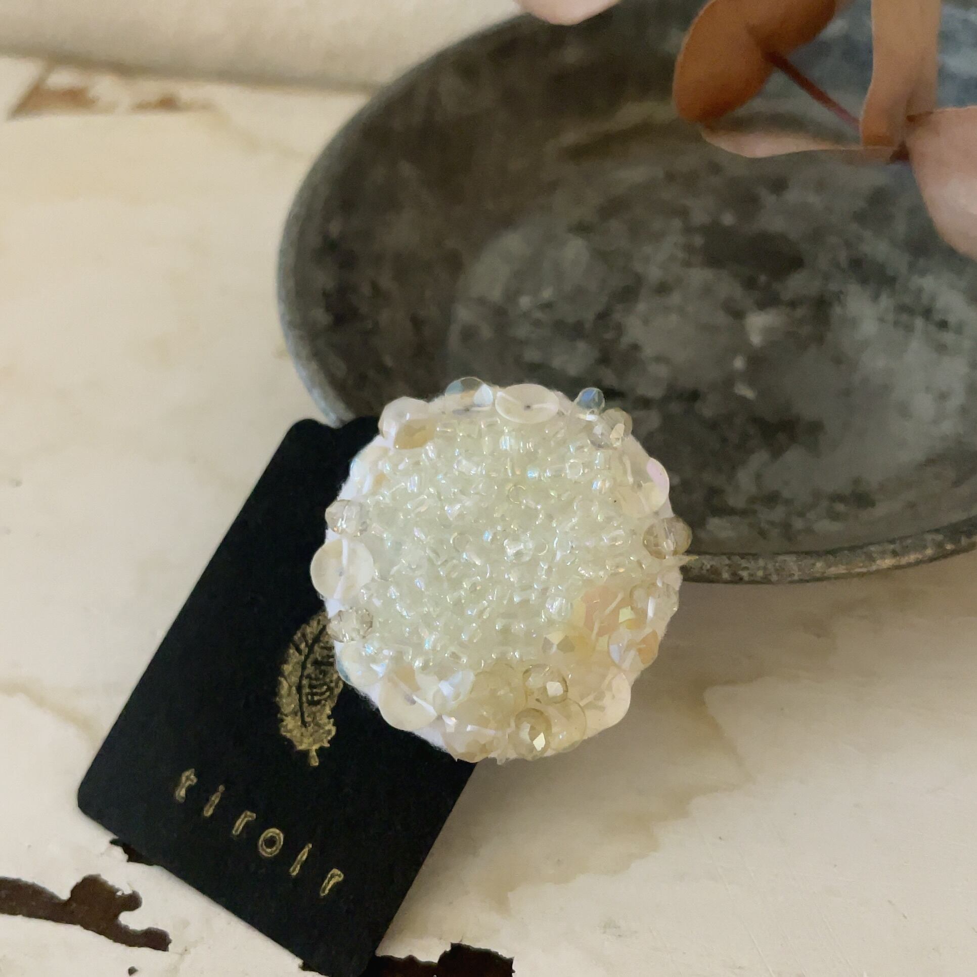 様々な輝くビーズパーツを集め、