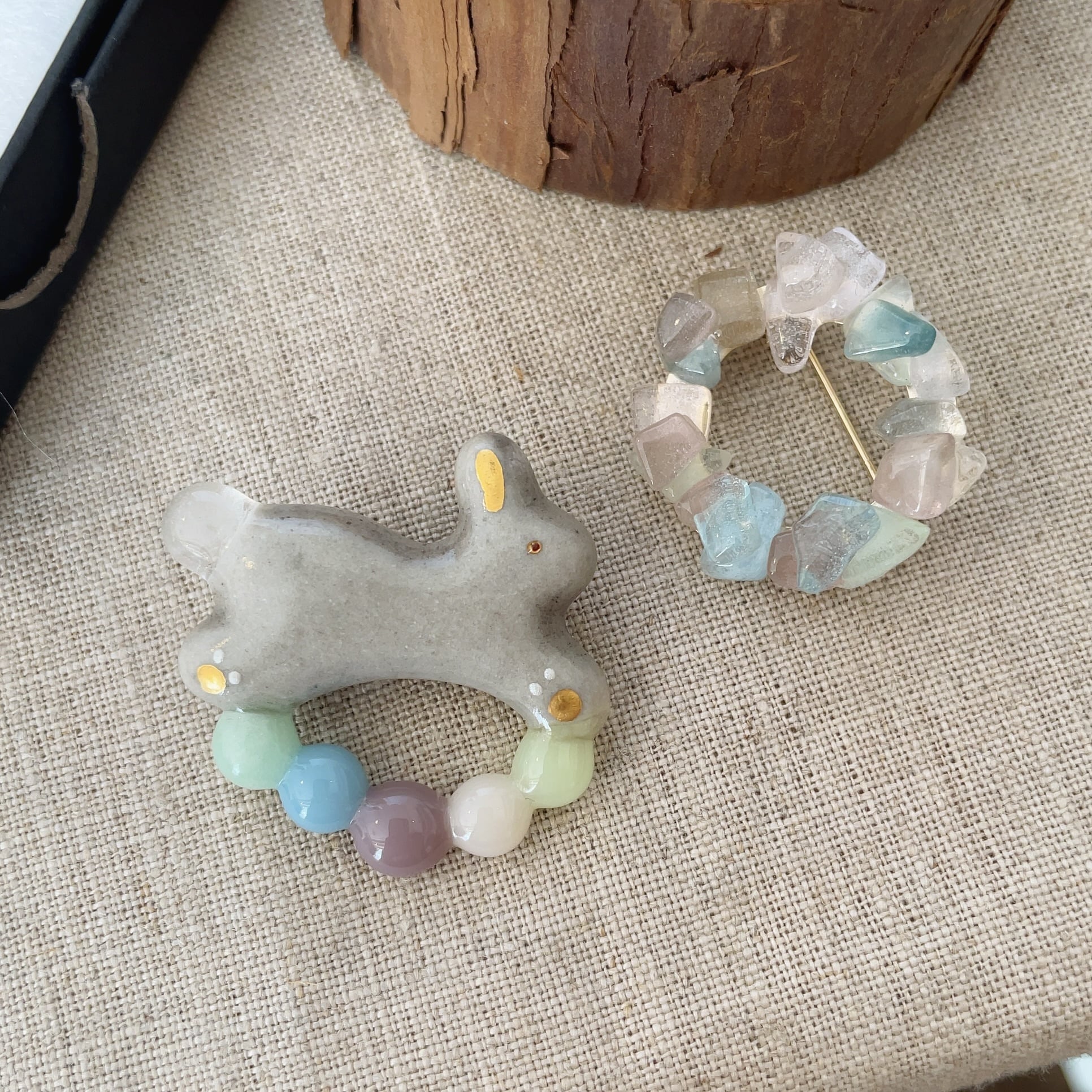 雑貨店 雨/ガラスブローチ/ウサギリース(グレー)