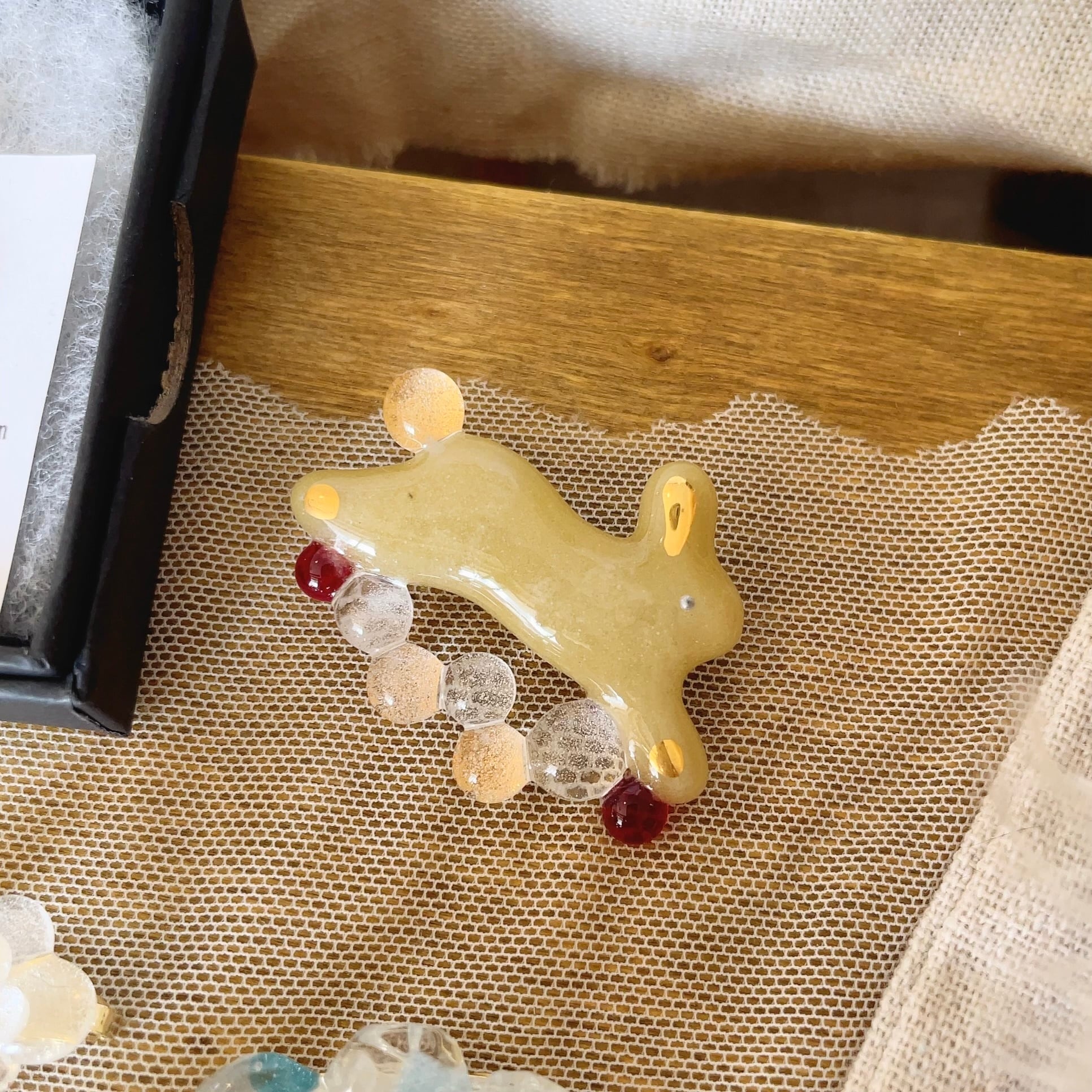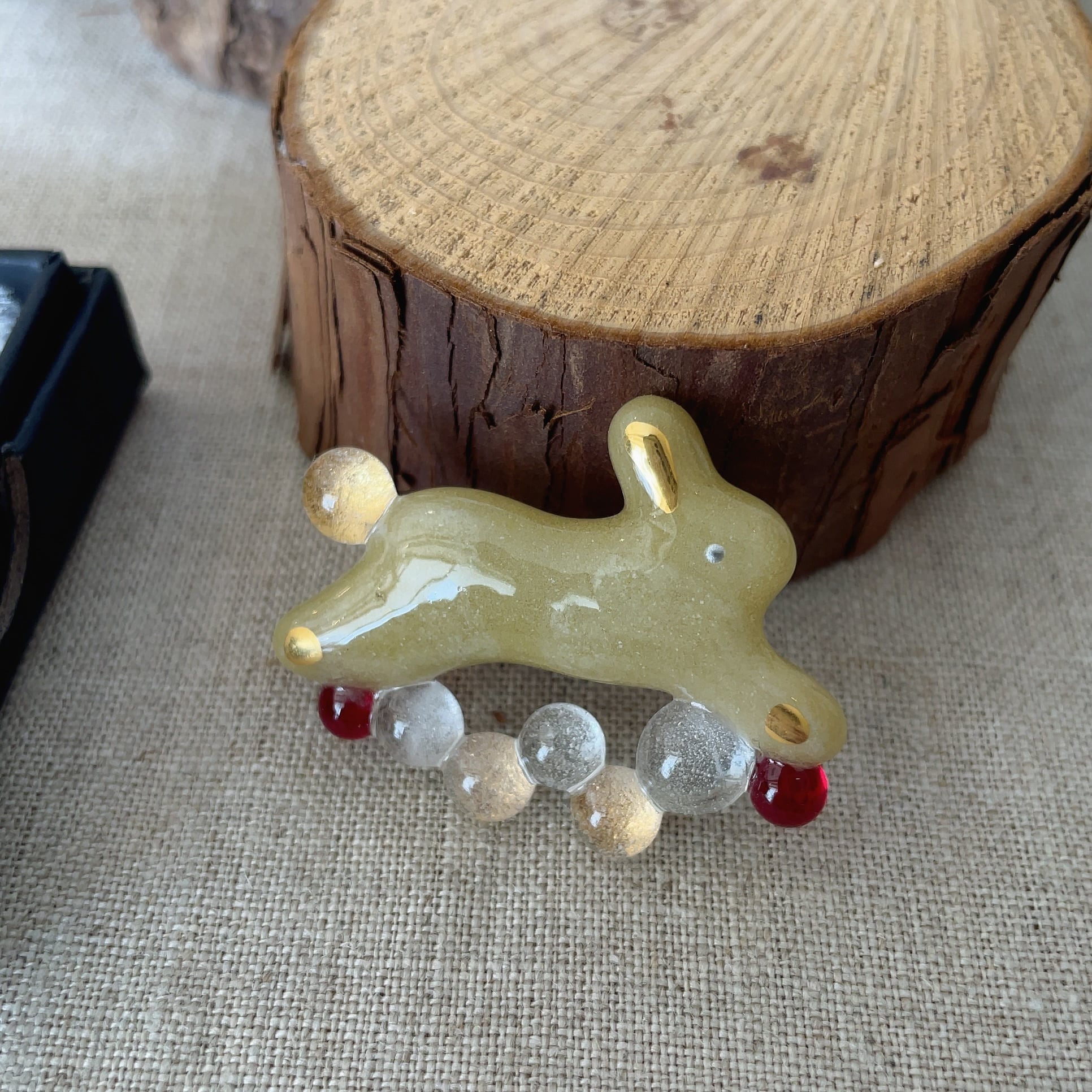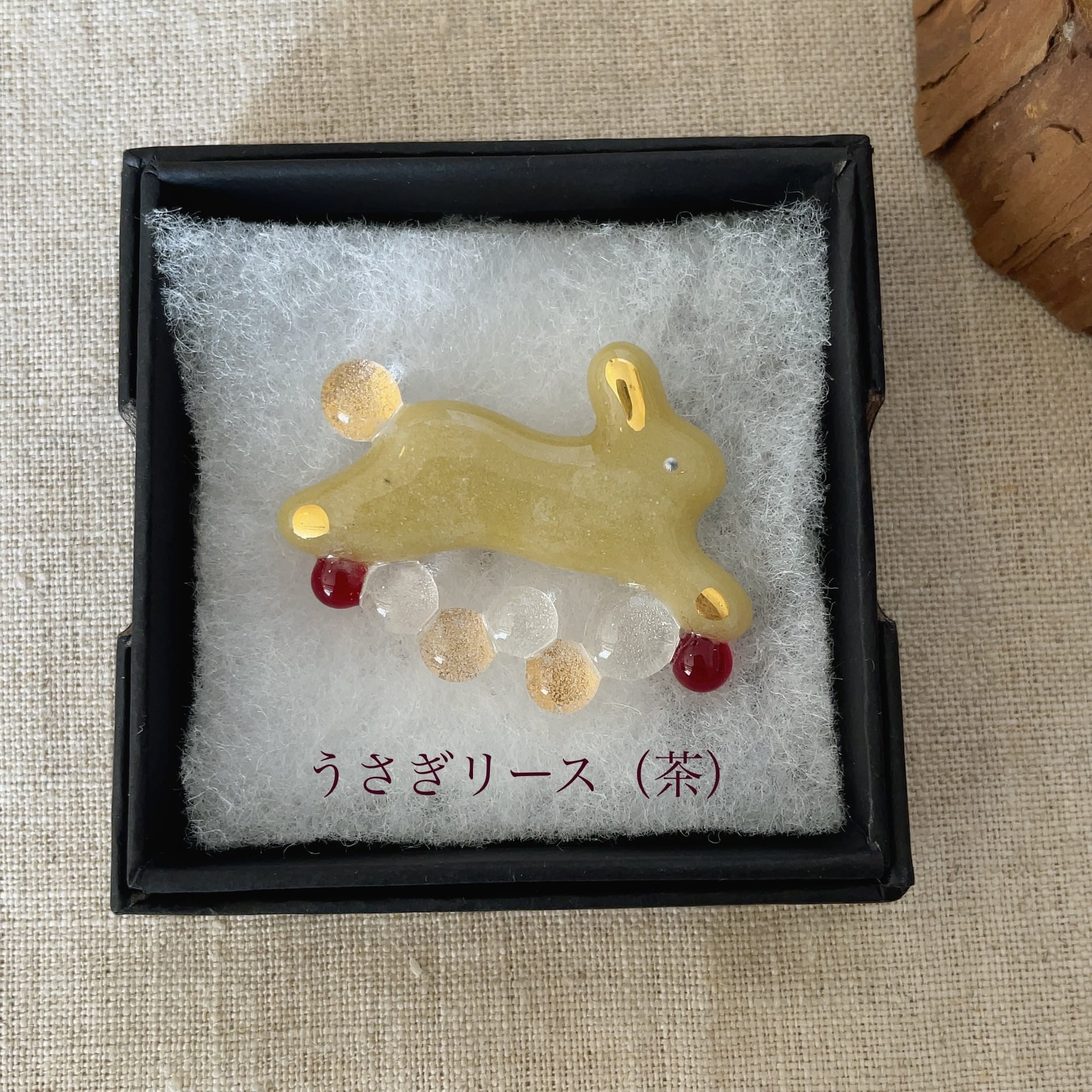 雑貨店 雨/ガラスブローチ/うさぎリース(茶)