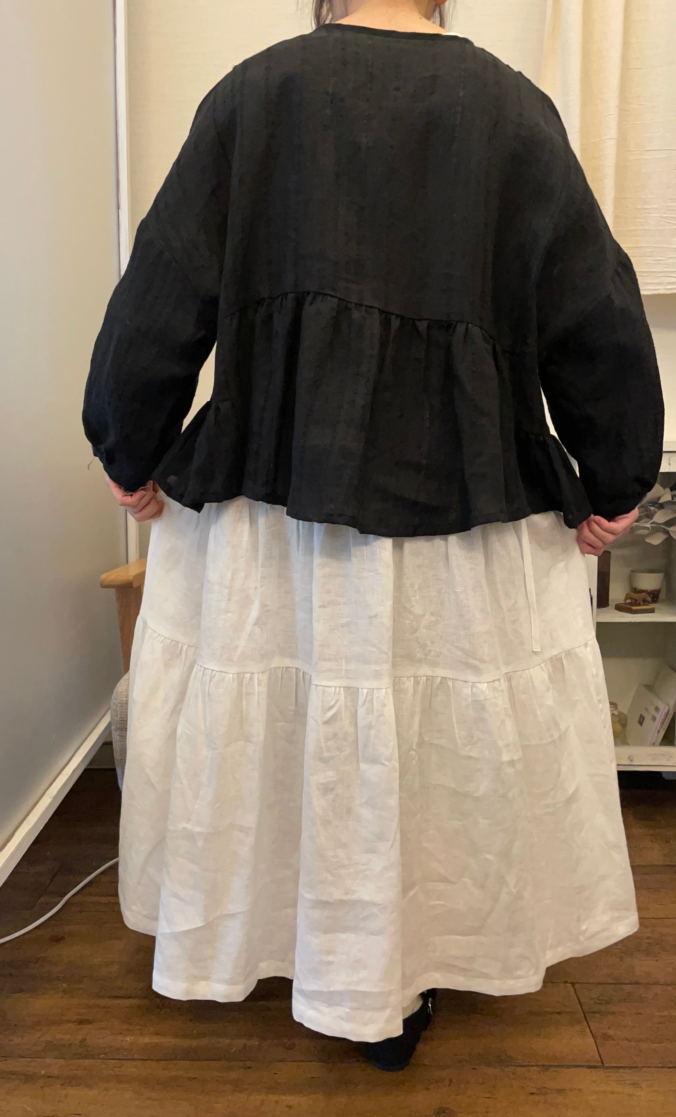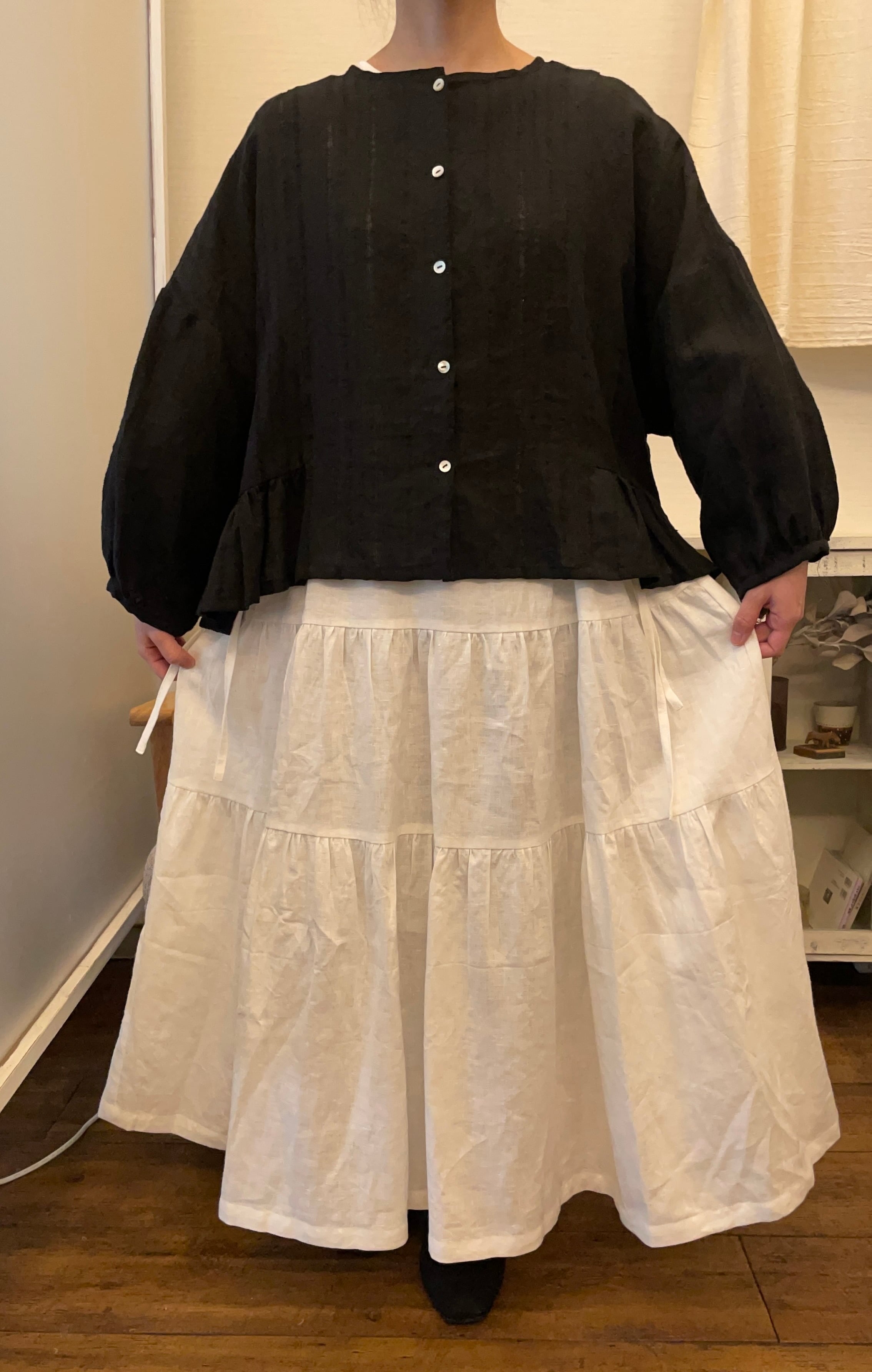 裾広がりの羽織れるブラウス