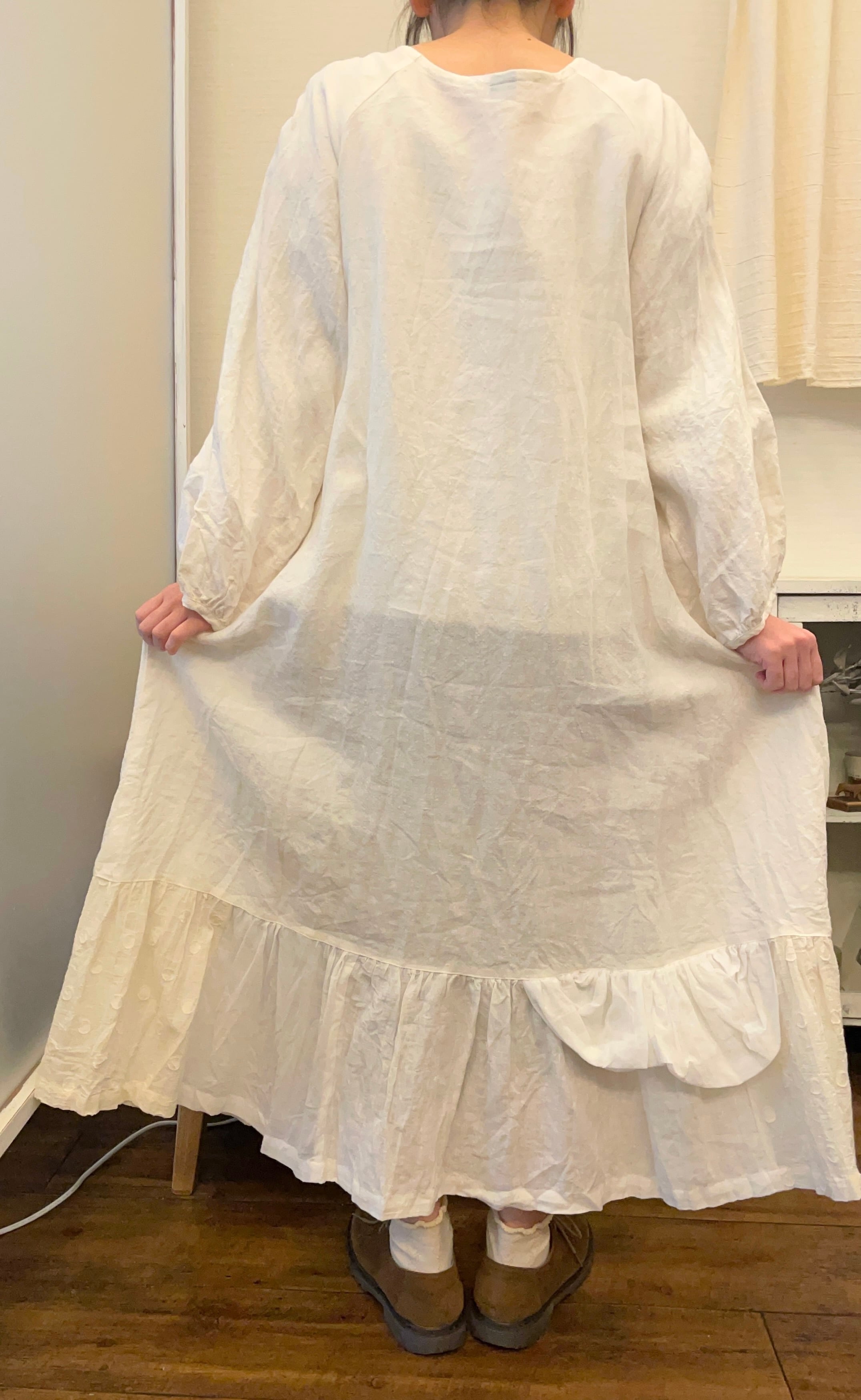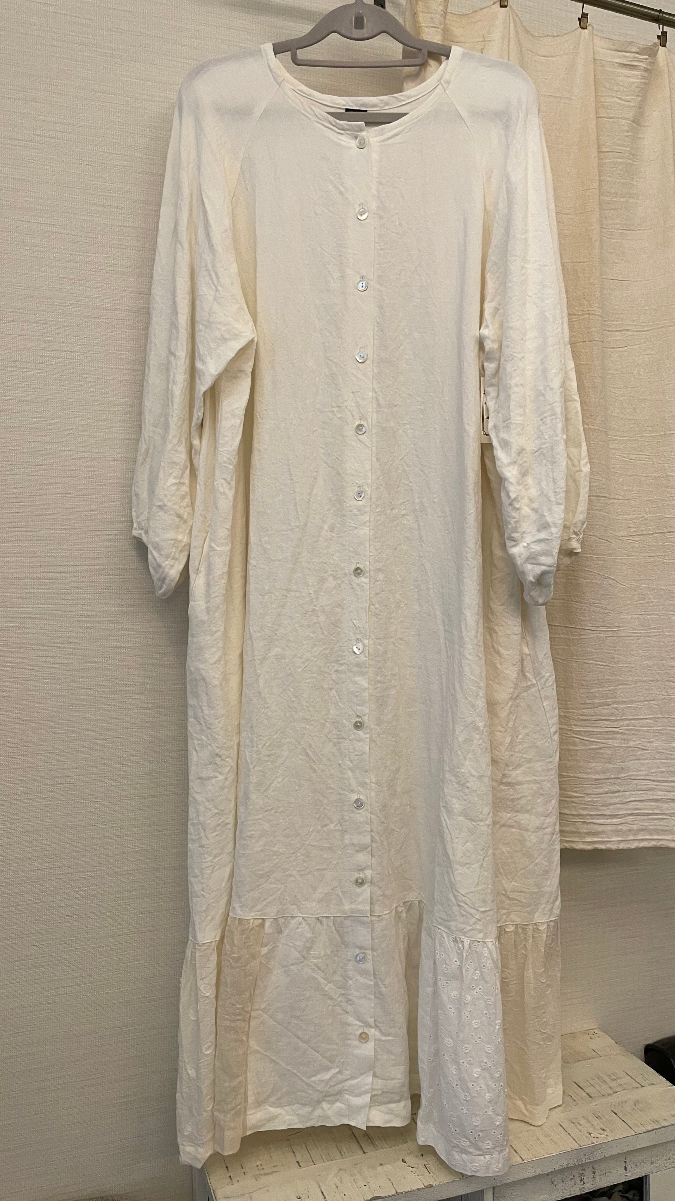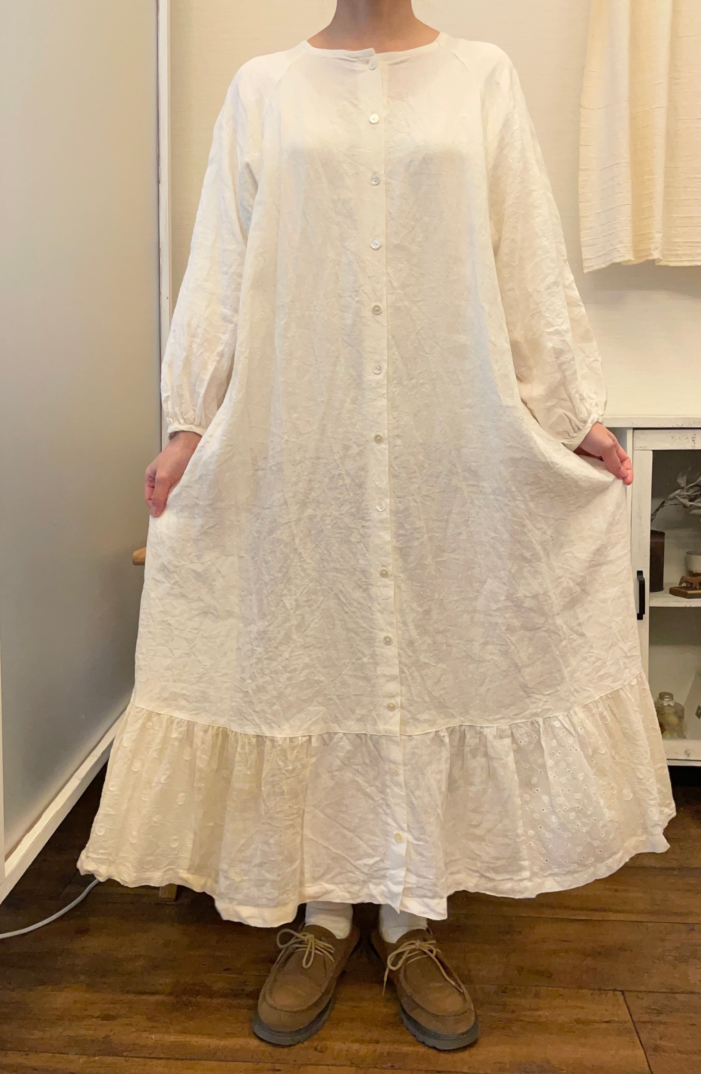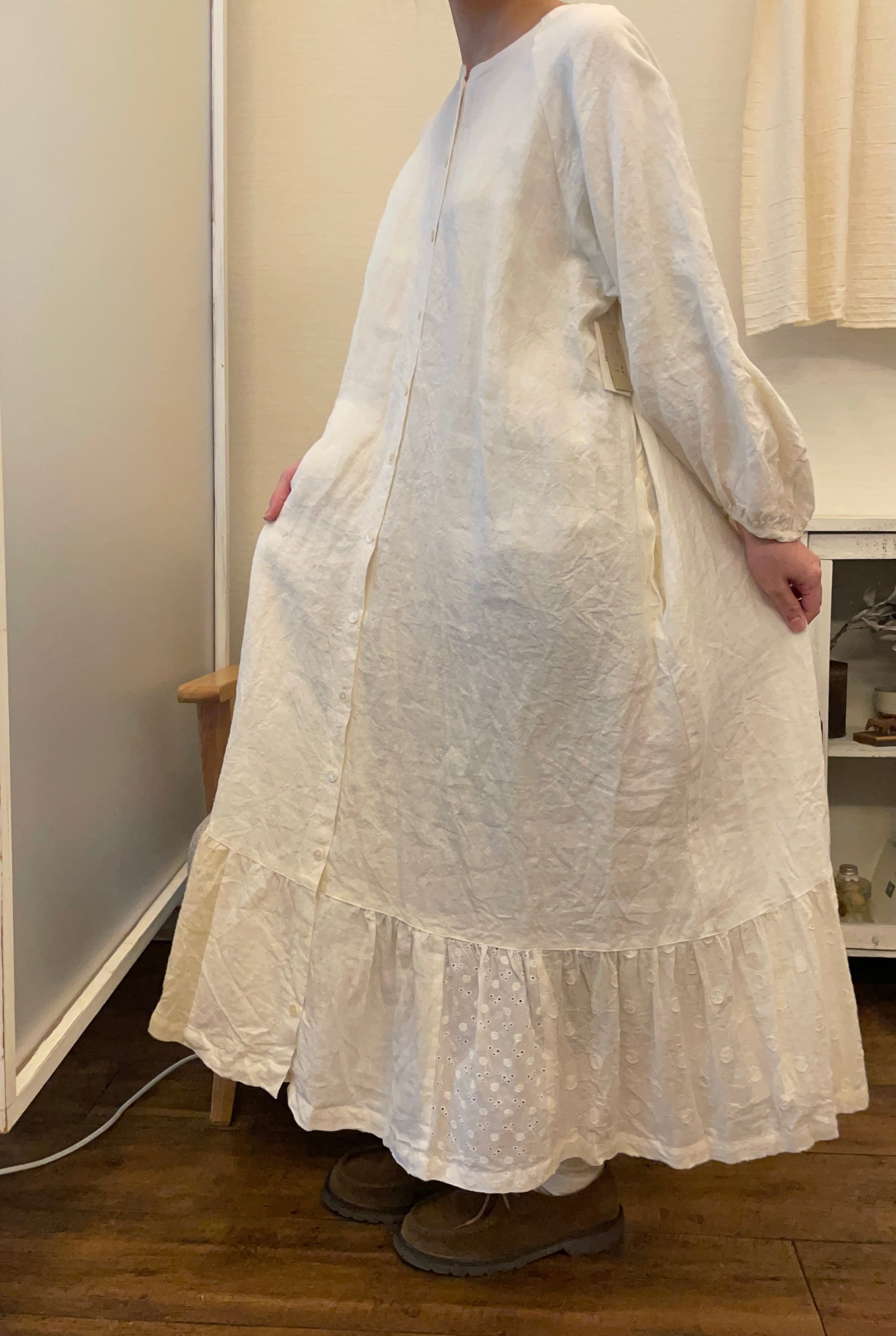 中厚のベルギーリネンで、ボタンを開けて羽織にしても◎