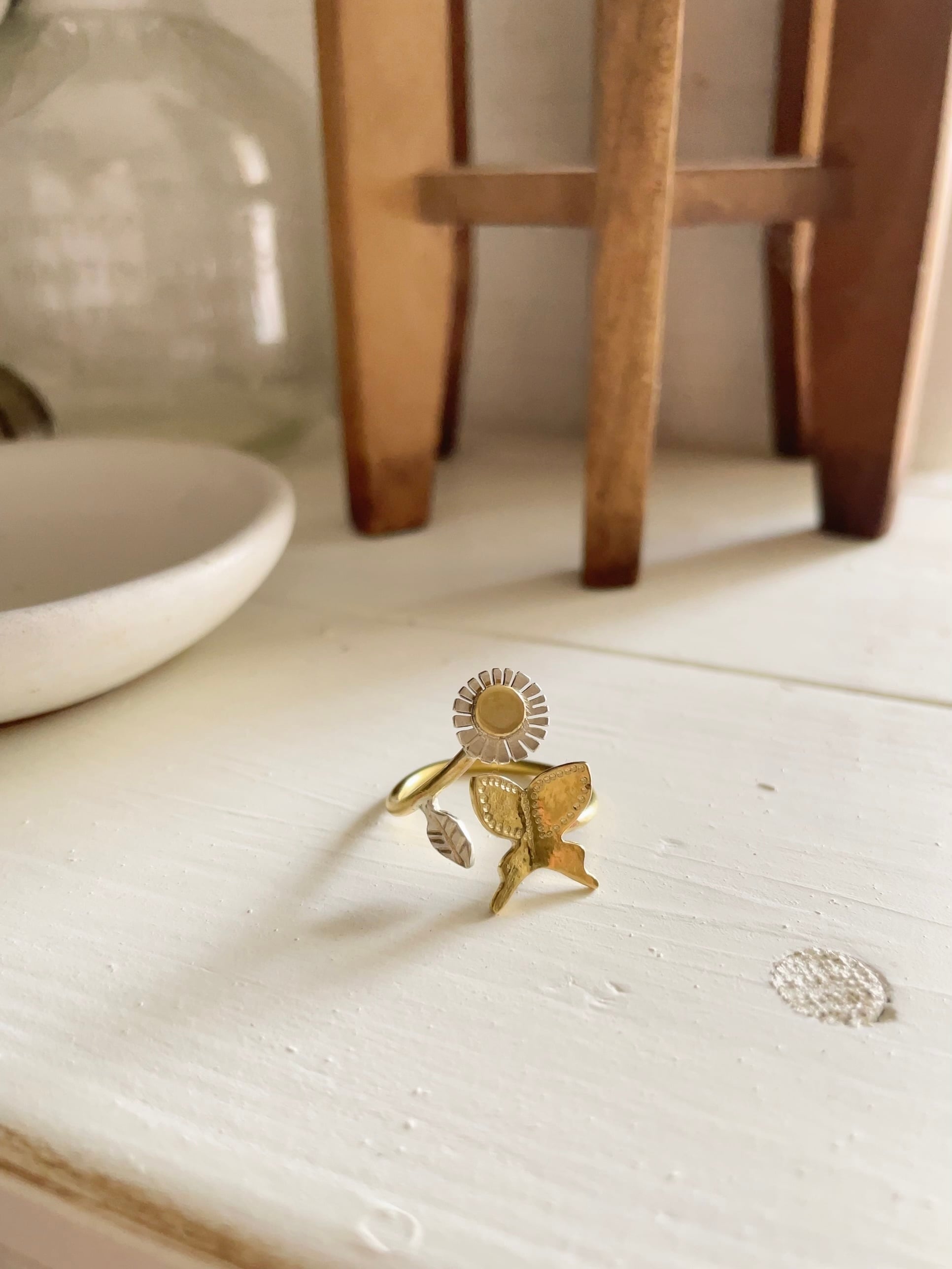maa&kuu/ハルジオンちょうちょリング